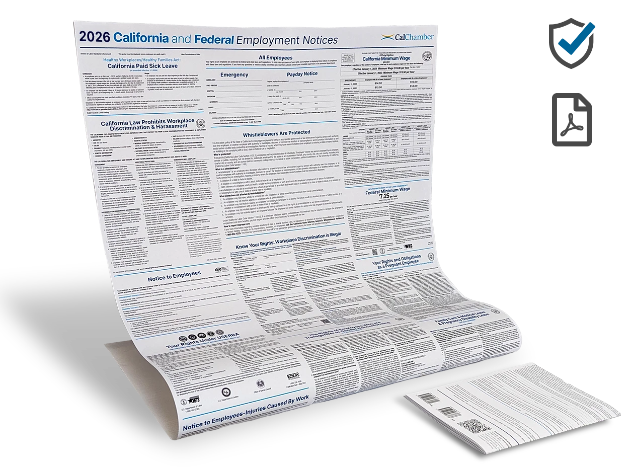 Compliance Alert: CalChamber's 2026 California and Federal Labor Law poster reflects mandatory updates to these notices: