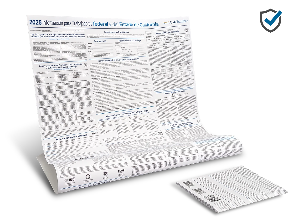 Why buy your posters from CalChamber? We monitor mandatory updates throughout the year and our direct contact with state agencies enhances our ability to provide accurate, up-to-date employment and labor law notices.