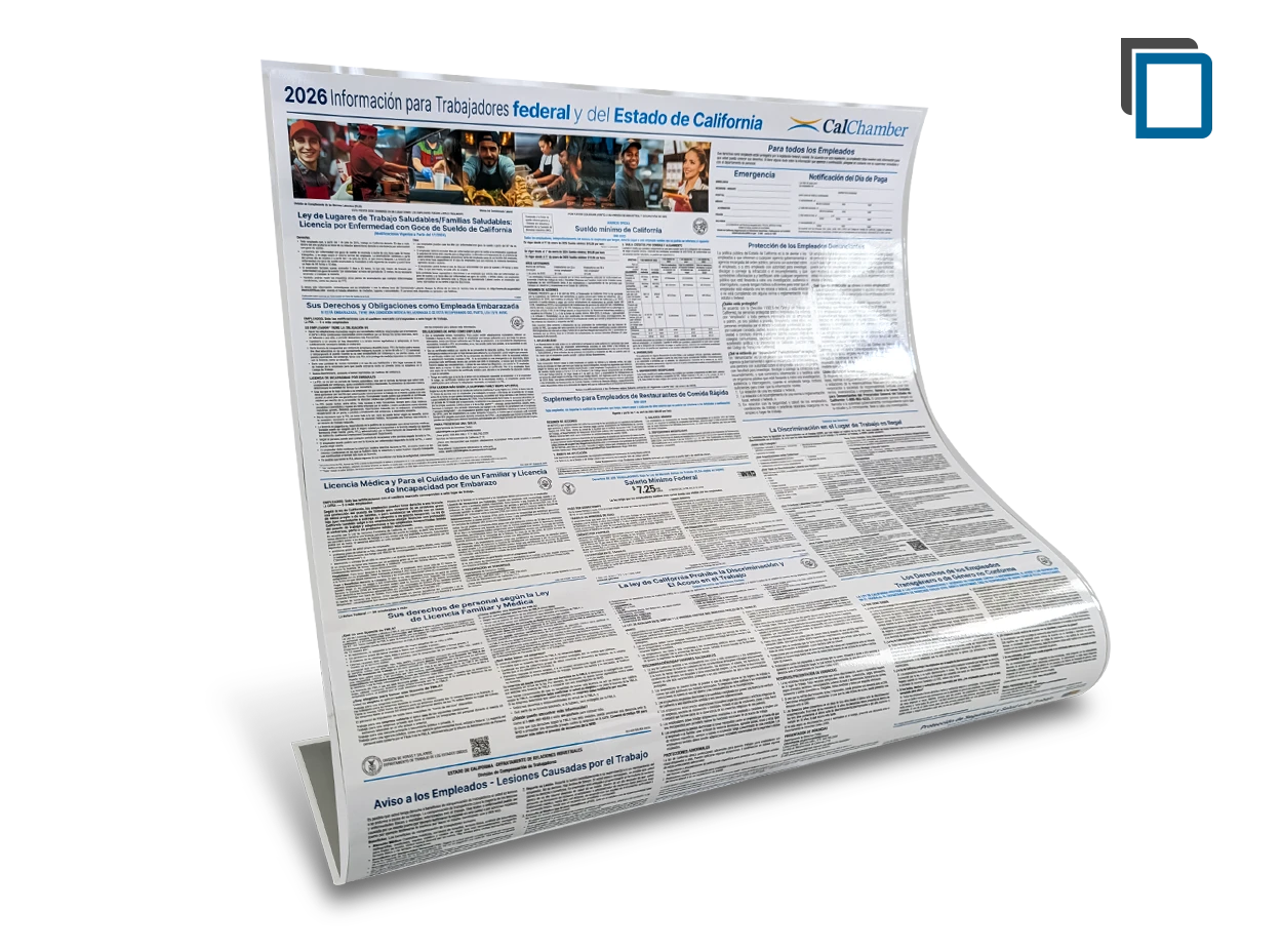 Be sure to display a poster in each business location and jobsite where employees can easily see it and read it. In addition to the English poster, you’ll need a Spanish poster version if you have Spanish-speaking employees.