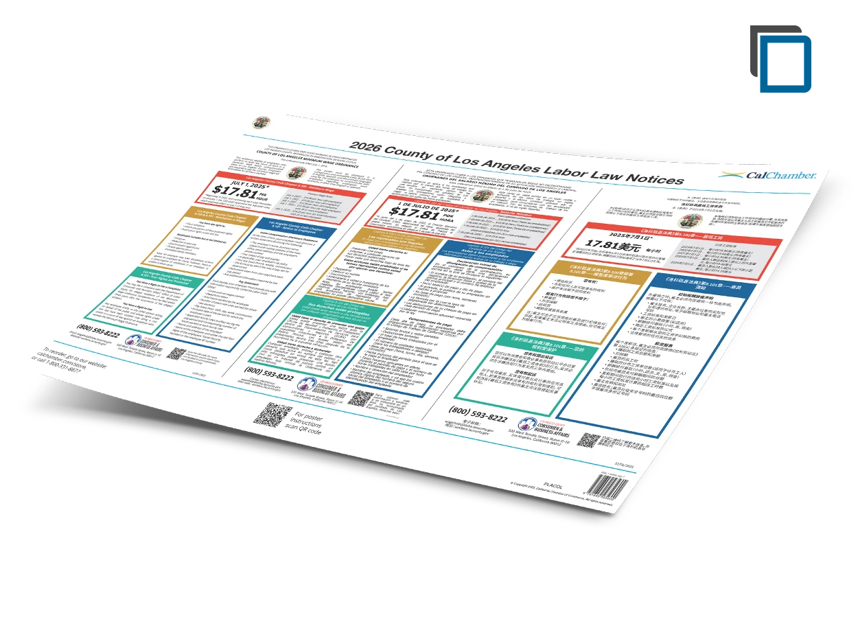 Effective July 1, 2024, the County of Los Angeles will no longer require the Supplemental Minimum Wage Poster previously sold by CalChamber.