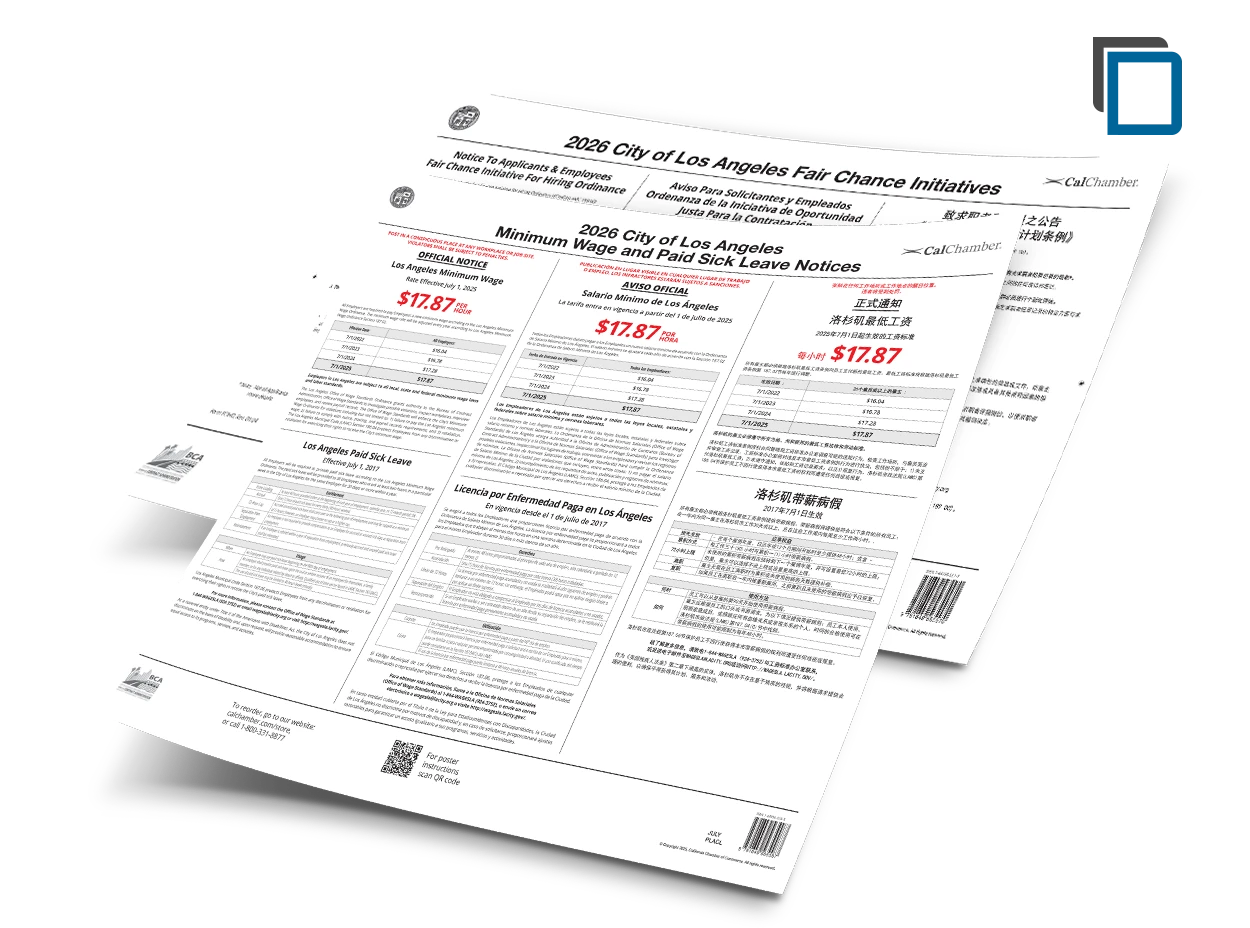 - If you've previously purchased a City of Los Angeles Labor Law Poster dated prior to July 2025 from CalChamber, you’ll need to purchase a current City of Los Angeles Labor Law Poster (Item PLACL).