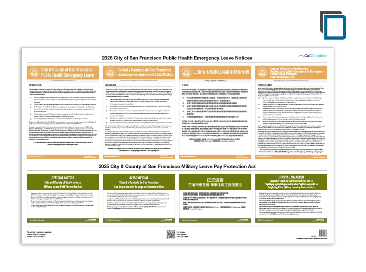 San Francisco Public Health Emergency & Military Leave Notices Poster (36.5" x 23")